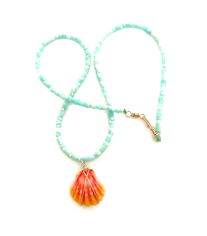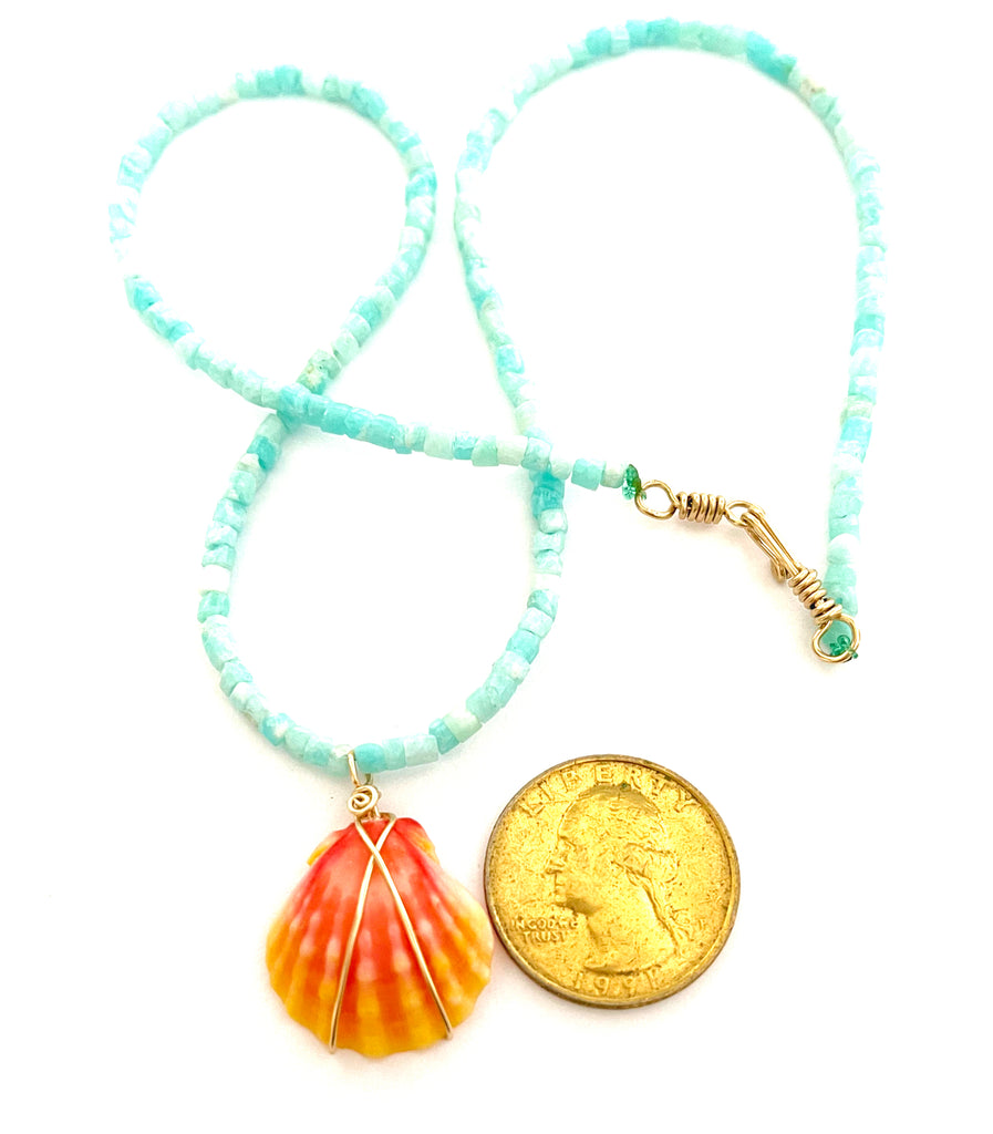Sunrise shell with Amazonite stone in 14kt goldfield. Each piece is 100% handmade.