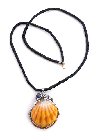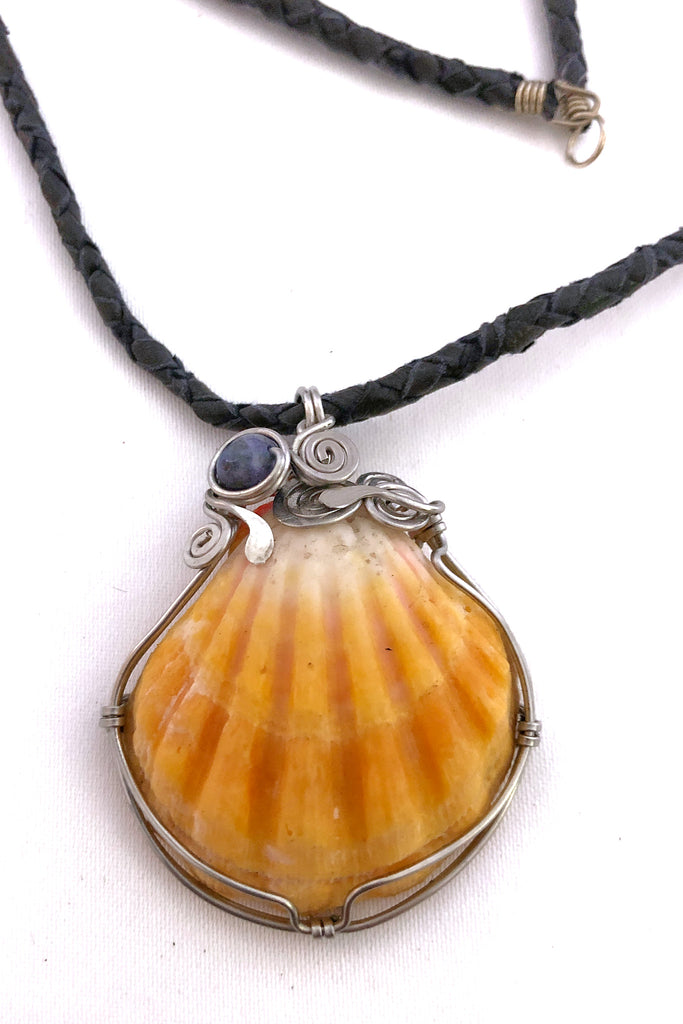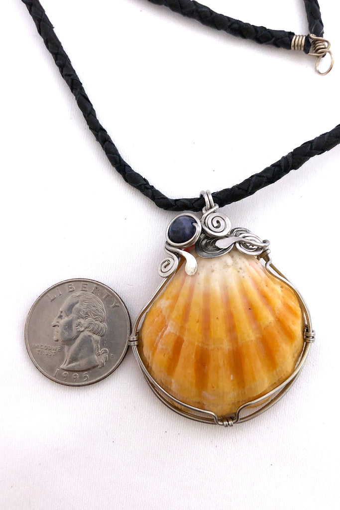 Rainbow Sunrise shell and sodalite pendant in stainlees steel