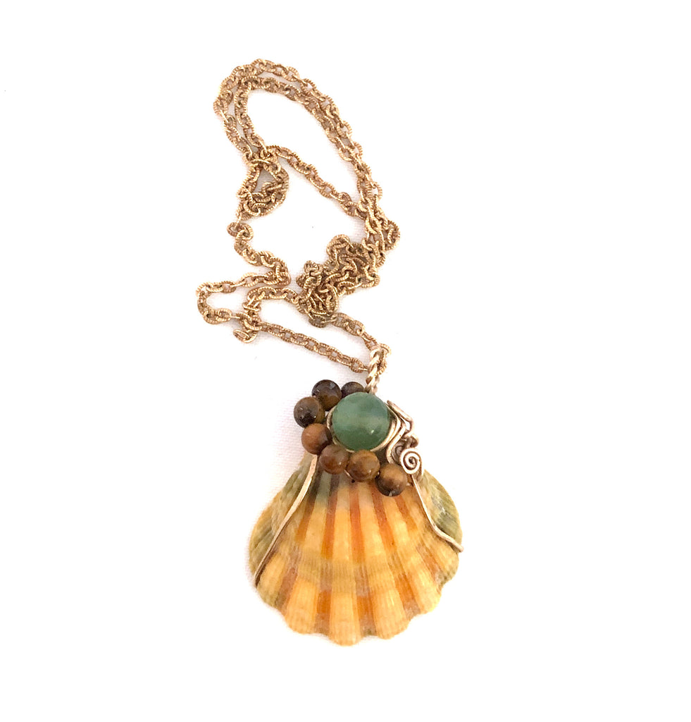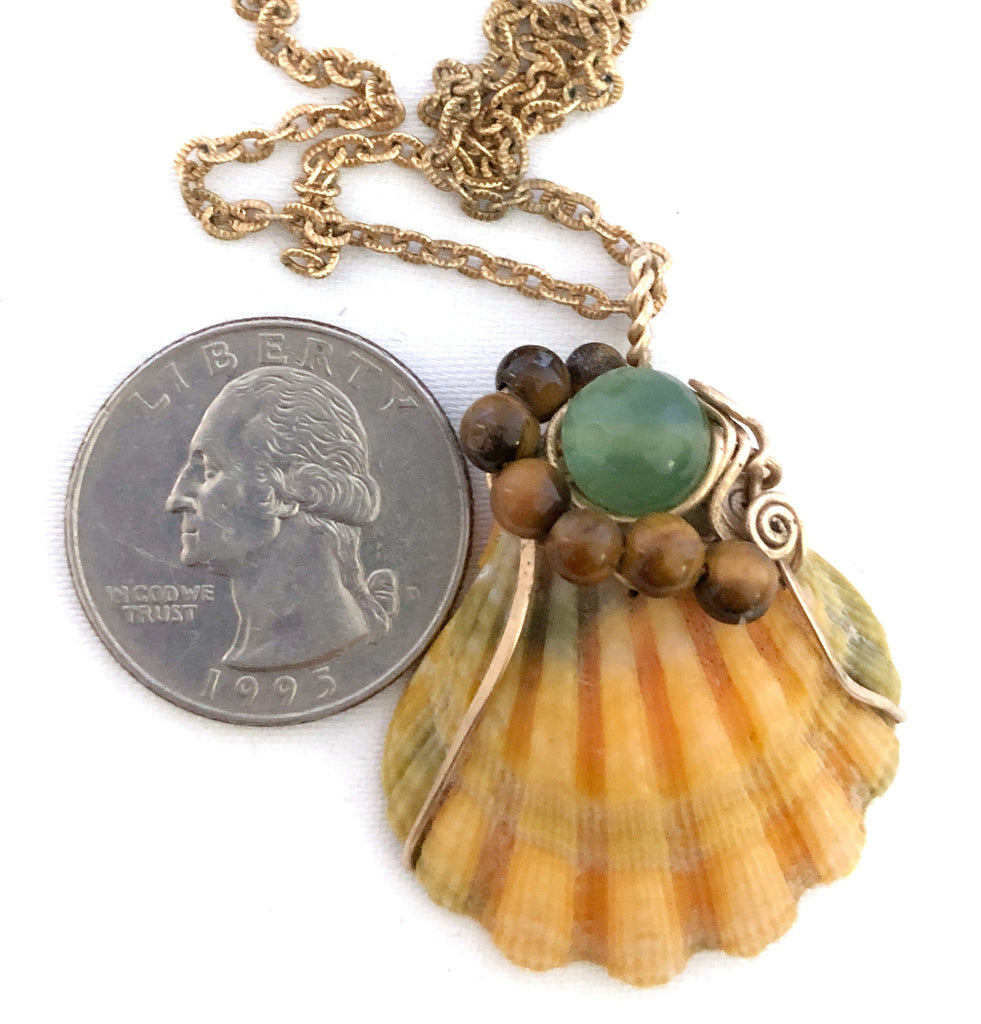 Sunrise shell with tiger eyes and jade in 14kt goldfield