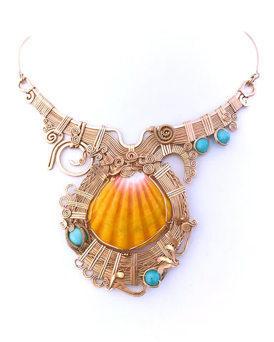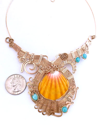 Hawaiian Sunrise shell with Larimar stone in 14kt goldfield.