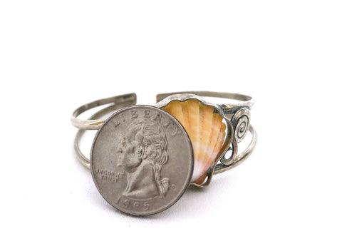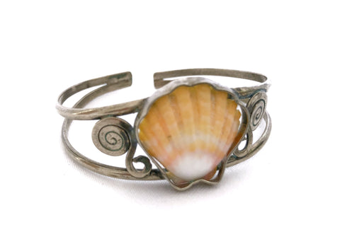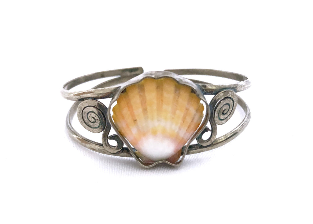Sunrise shell in alpaca silver. It is a metal of the result of the combination of 50% of silver with 50% of copper. It is waterproof.