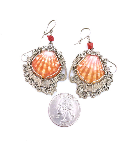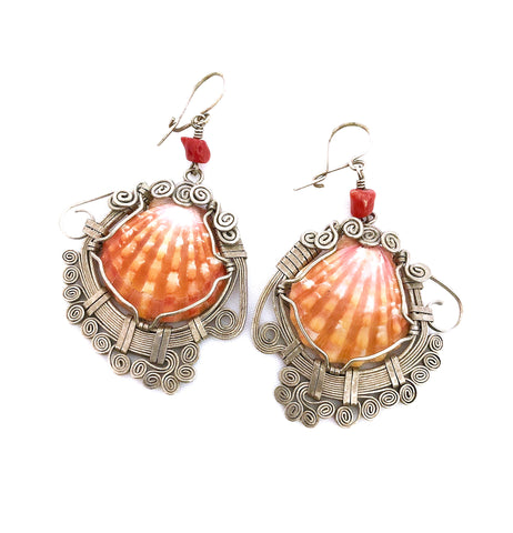 Red sunrise shells with red coral in alpaca silver.