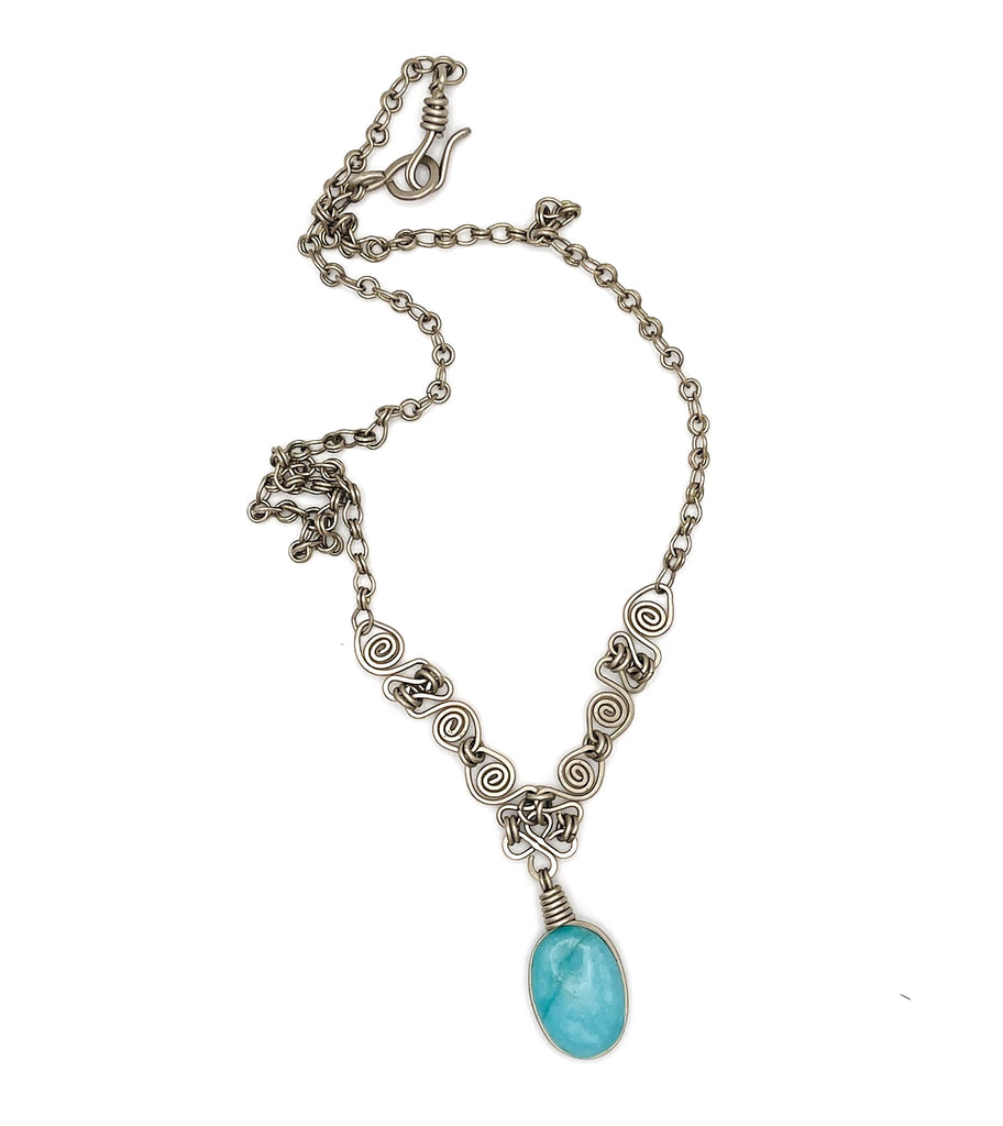 Amazonite stone from Bolivia in alpaca silver. It is a metal of the result of the combination of 50% of silver with 50% of copper. It is waterproof and adjustable. Amazonite is an excellent stress reliever. Amazonite can tackle a wide array of emotions, but it’s most effective on fear and timidness. Fear is the enemy of maturity and development. Your inhibitions about new life experiences do nothing but hold you back in life. Even if you’re not outwardly afraid, those deeply rooted feelings of self-doubt and worry will prevent you from living your truth.