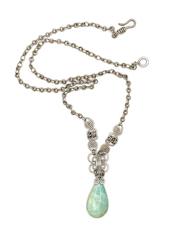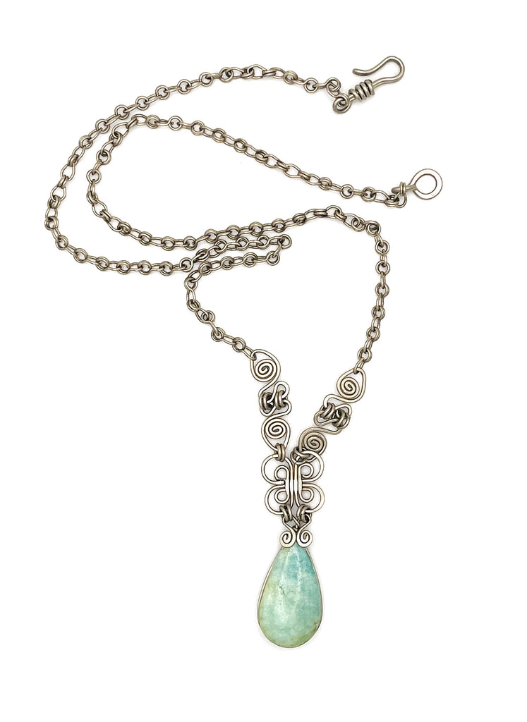 Amazonite stone from Bolivia in alpaca silver. It is a metal of the result of the combination of 50% of silver with 50% of copper. It is waterproof and adjustable. Amazonite is an excellent stress reliever. Amazonite can tackle a wide array of emotions, but it’s most effective on fear and timidness. Fear is the enemy of maturity and development. Your inhibitions about new life experiences do nothing but hold you back in life. Even if you’re not outwardly afraid, those deeply rooted feelings of self-doubt and worry will prevent you from living your truth.