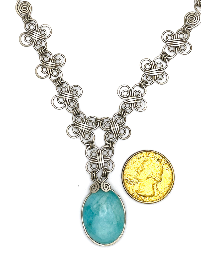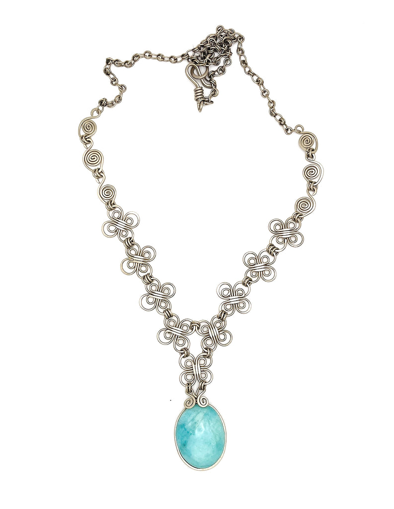 Amazonite stone from Bolivia in alpaca silver. It is a metal of the result of the combination of 50% of silver with 50% of copper. It is waterproof and adjustable. Amazonite is an excellent stress reliever. Amazonite can tackle a wide array of emotions, but it’s most effective on fear and timidness. Fear is the enemy of maturity and development. Your inhibitions about new life experiences do nothing but hold you back in life. Even if you’re not outwardly afraid, those deeply rooted feelings of self-doubt and worry will prevent you from living your truth.