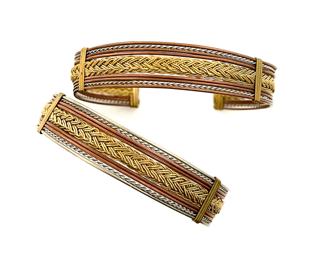 Bracelet of three metals, (alpaca silver, copper and bronze) This combiancion of metals represent the trilogy (spirit, body and mind)