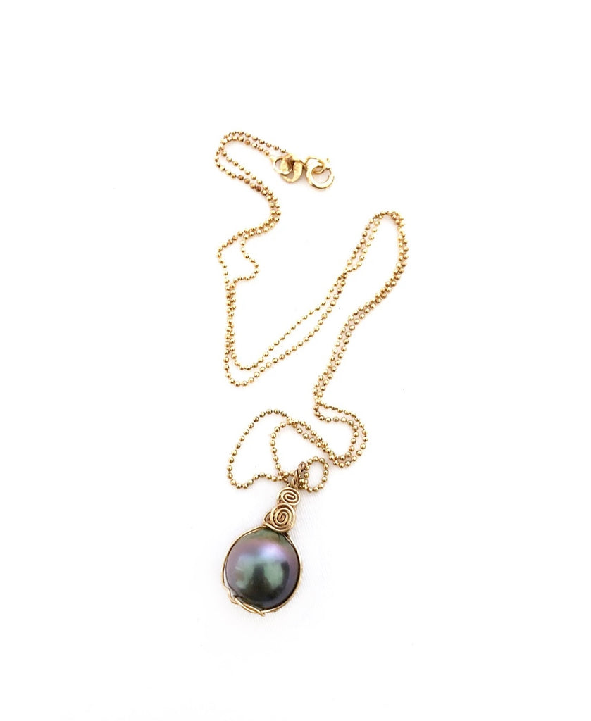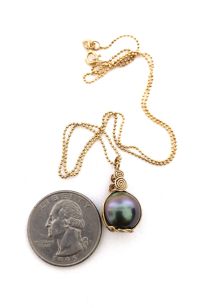 Top quality Black Tahitian pearl in 14kt. goldfield.