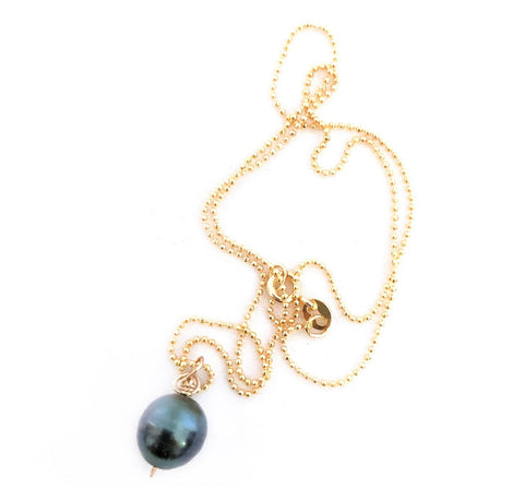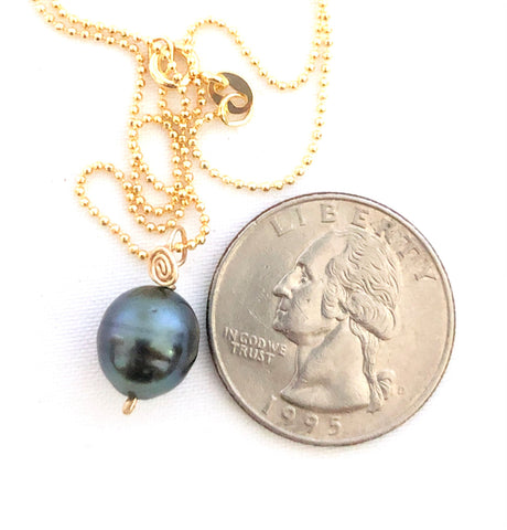 Black Tahitian pearlwith blue hue in 14kt. goldfield.
