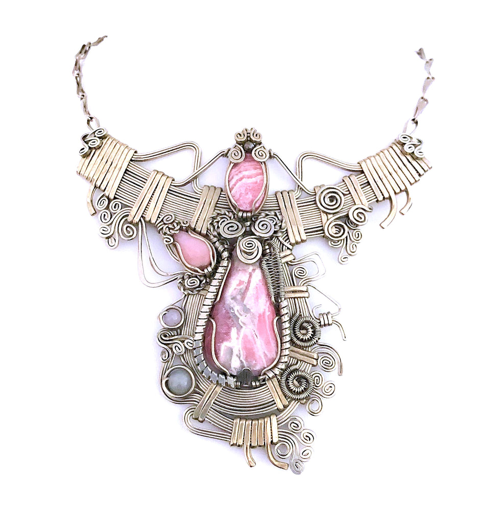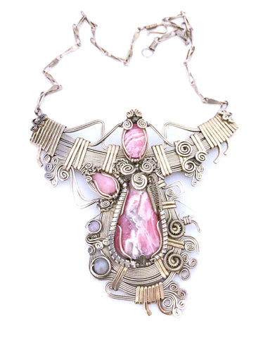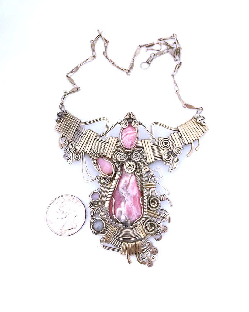 Rhodochrosite from Argentina in alpaca silver. It is a metal of the result of the combination of 50% of silver with 50% of copper. this necklace is waterproof and adjustable.