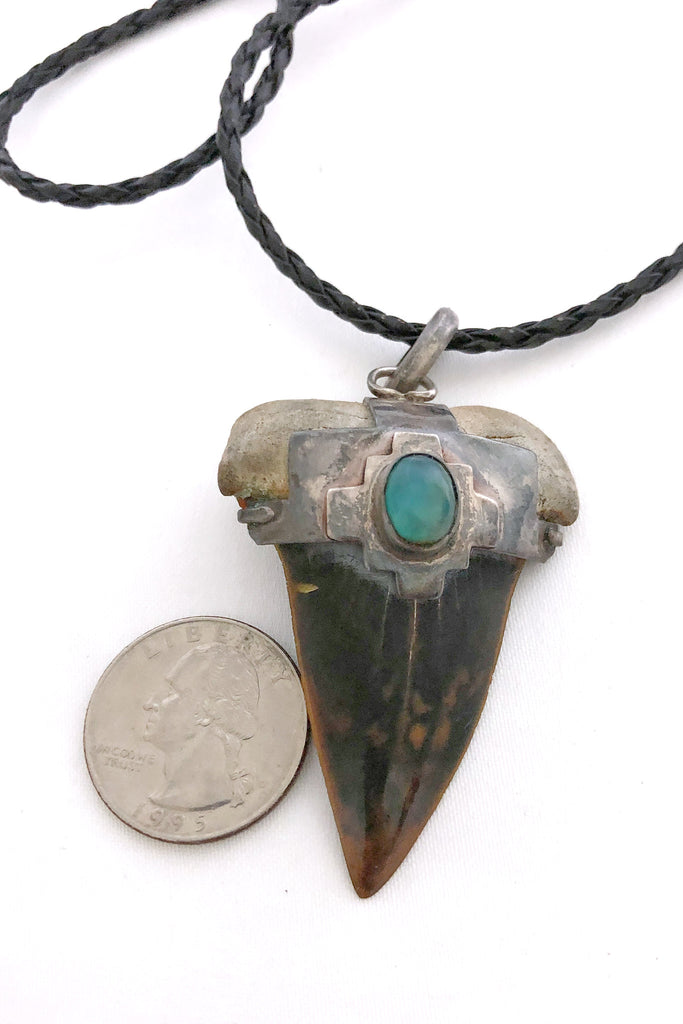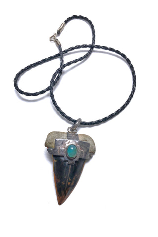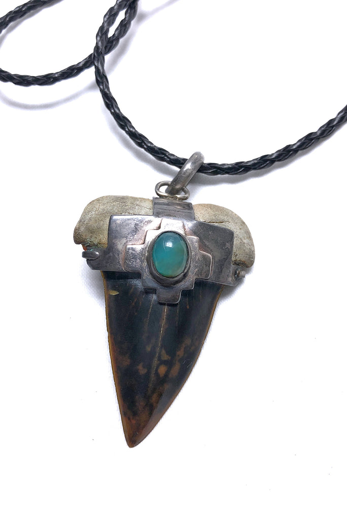 Fossil shark tooth with andean opal in sterling silver. This piece has an average of 65 thousand years old.